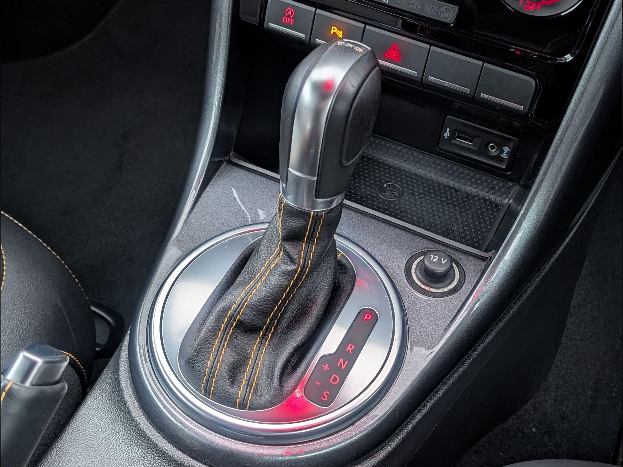 - Dark Ceramic Stitching on Leather Trimmed Handbrake Grip