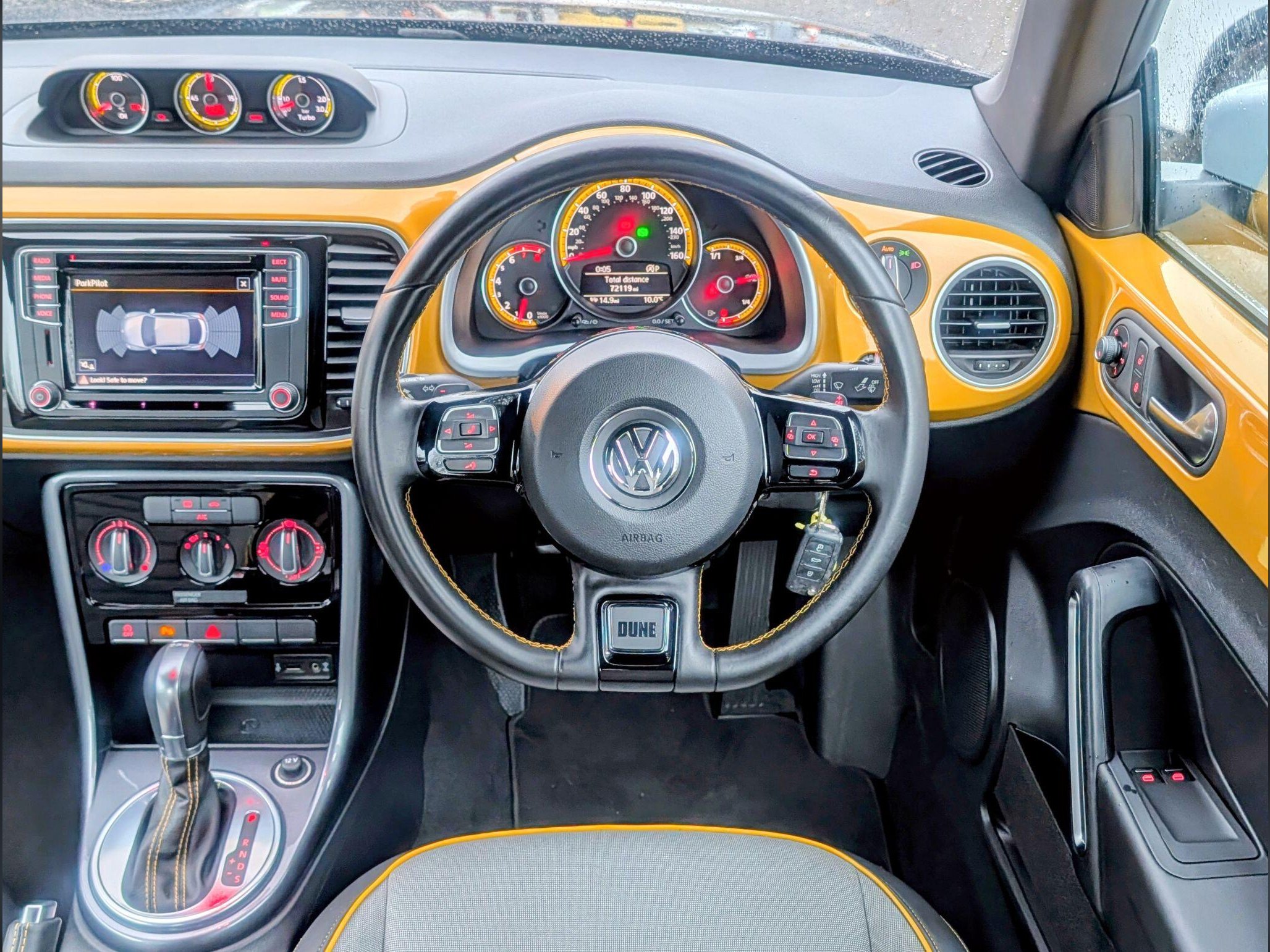 We are pleased to be offering great Beetle TSI Dune which has been cherished by just one owner from new with a clear vehicle history check. This distinctive model boasts a lively 1.2 litre petrol engine, meeting Euro 6 emissions standards, so no problems in the low emission zones which are continuing to appear in our major cities. The Dune trim makes this particular model eye catching both inside and out. Inside you'll find comfort and convenience with Climatic semi-automatic air conditioning, and the Light and Sight Pack which includes automatic headlights. Parking is made effortless thanks to front and rear parking sensors, complemented by a dusk sensor for automatic driving lights. The Composition Media system, complete with Bluetooth connectivity, ensures you stay connected on every journey.